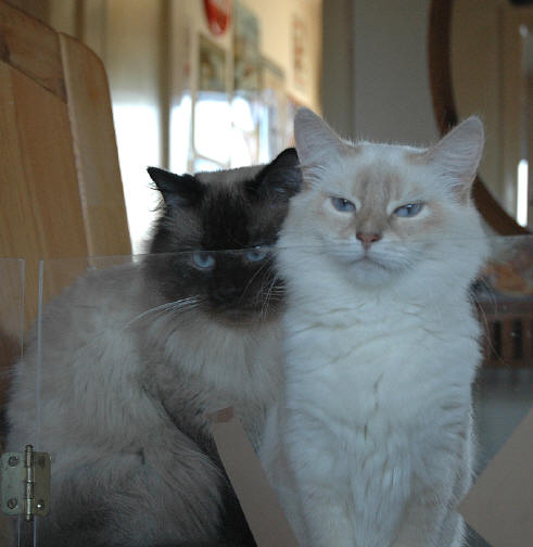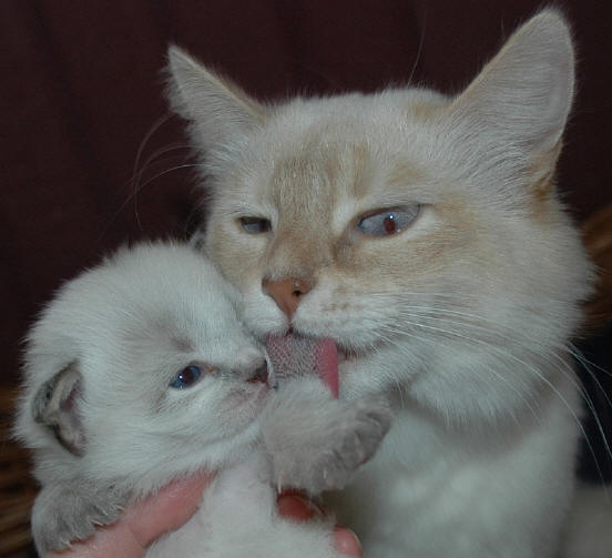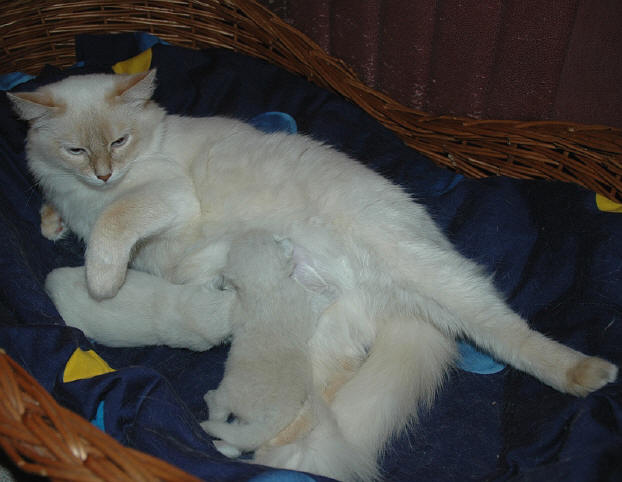 Mutter Antje of little Moscow cinnamon-tabby-point Vater FunnyFrank the Fabulous seal-point/white PRA-DNA-Testergebnis der Eltern: NN = negativ auf diese Mutation PK-Mangel-DNA-Testergebnis der Eltern: NN = negativ auf diese Mutation  |