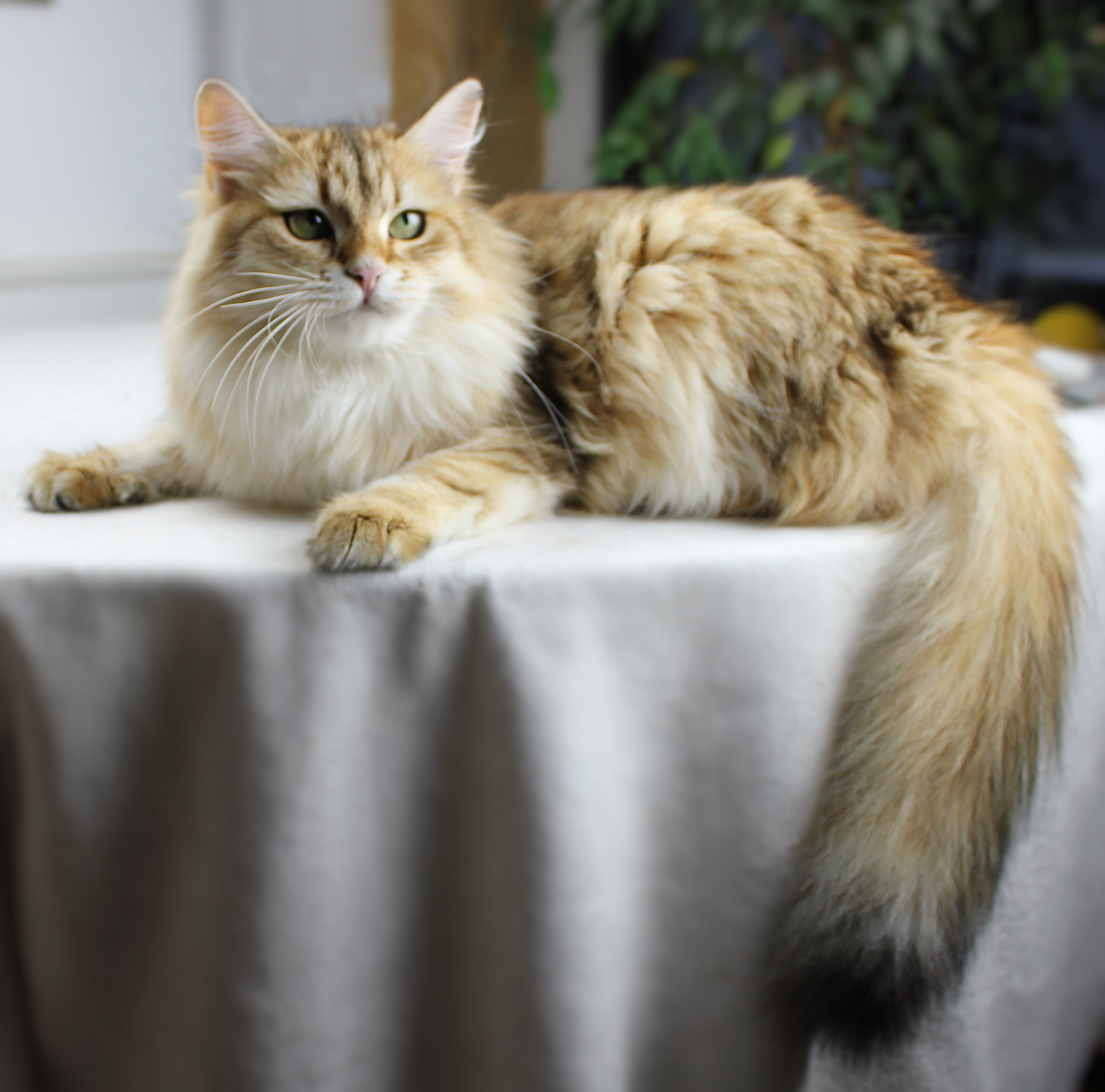 ist eine ganz besonders schöne Katze in einer jungen Farbe. Sie ist an allem interessiert und war schon öfter als Model im Fotostudio.